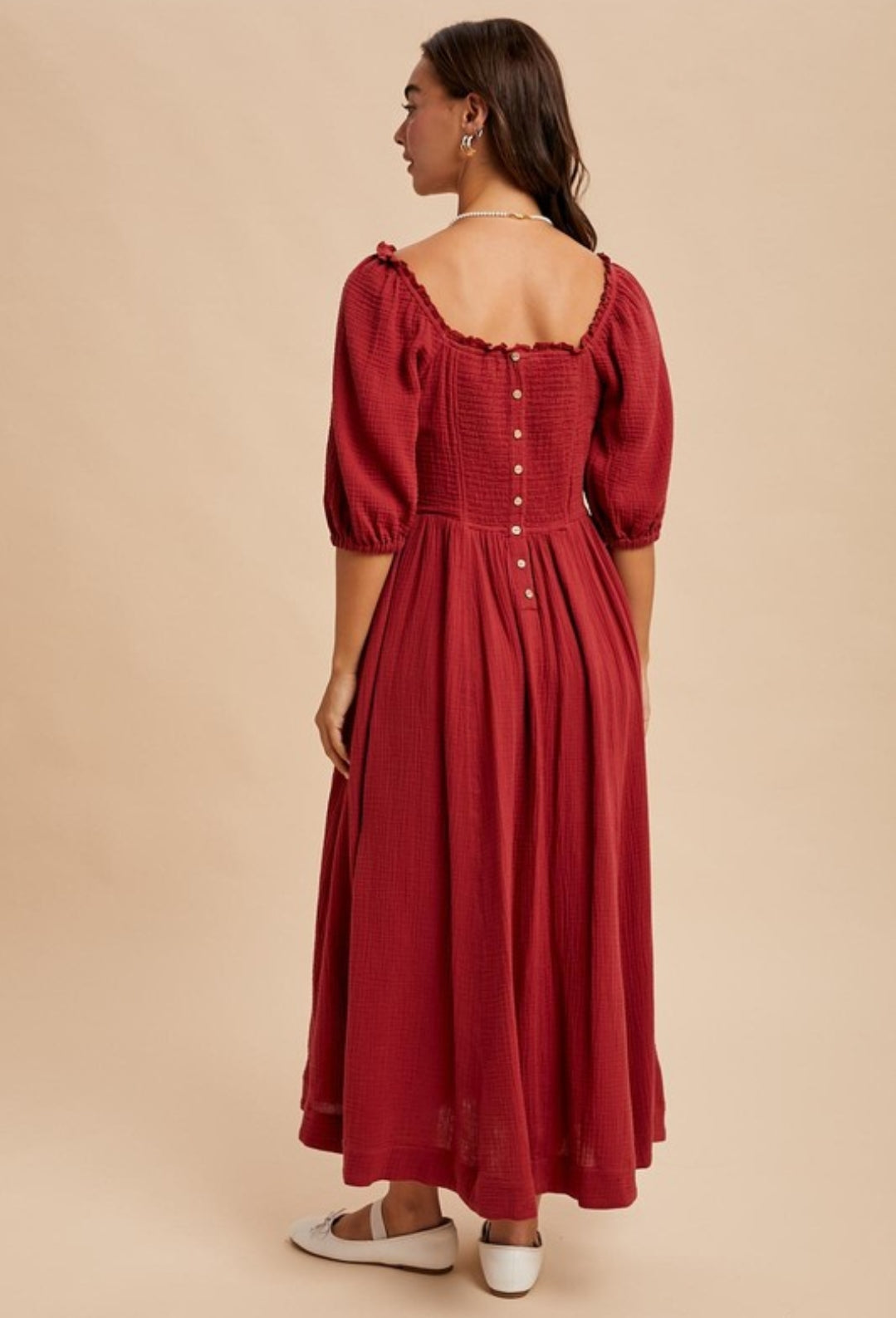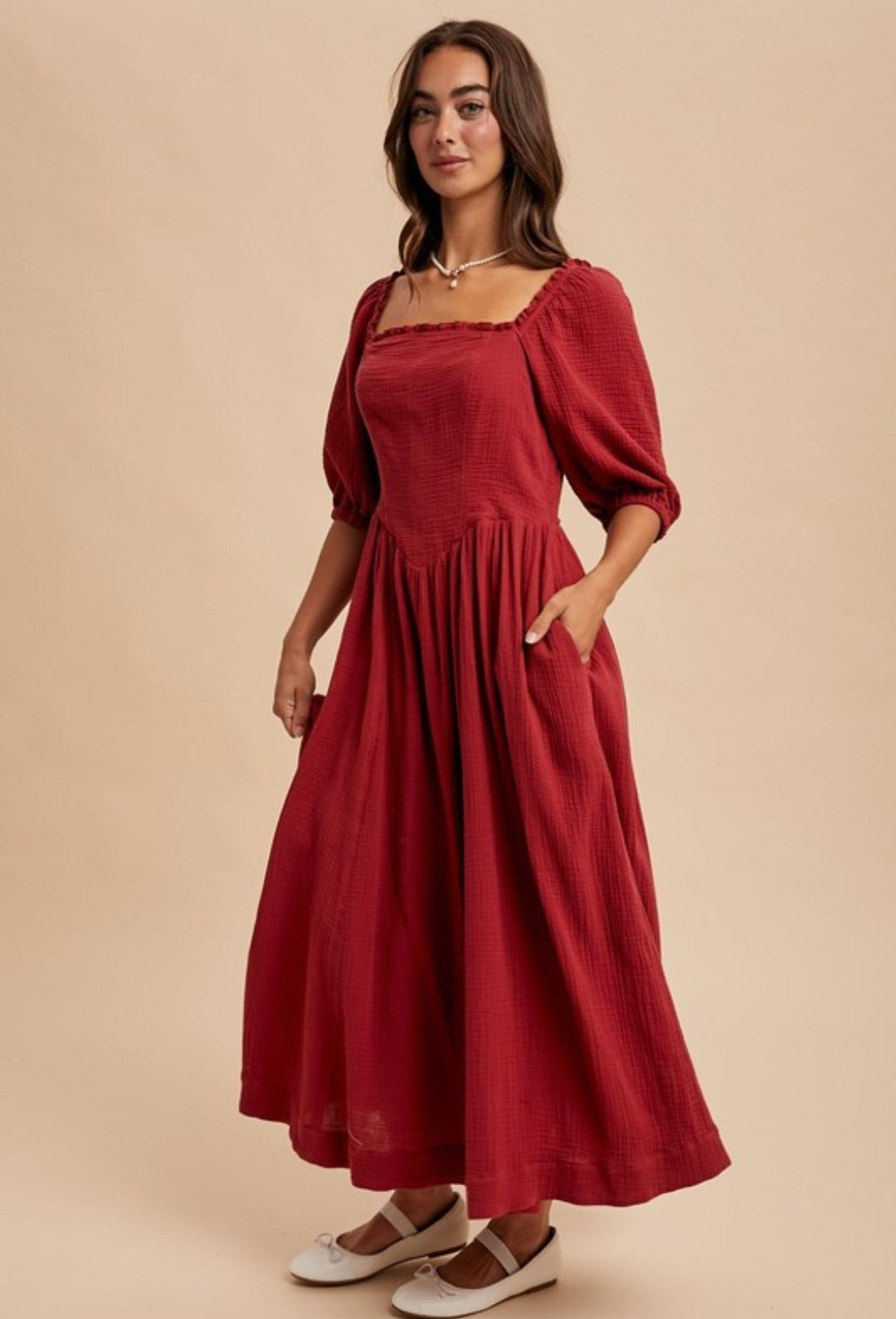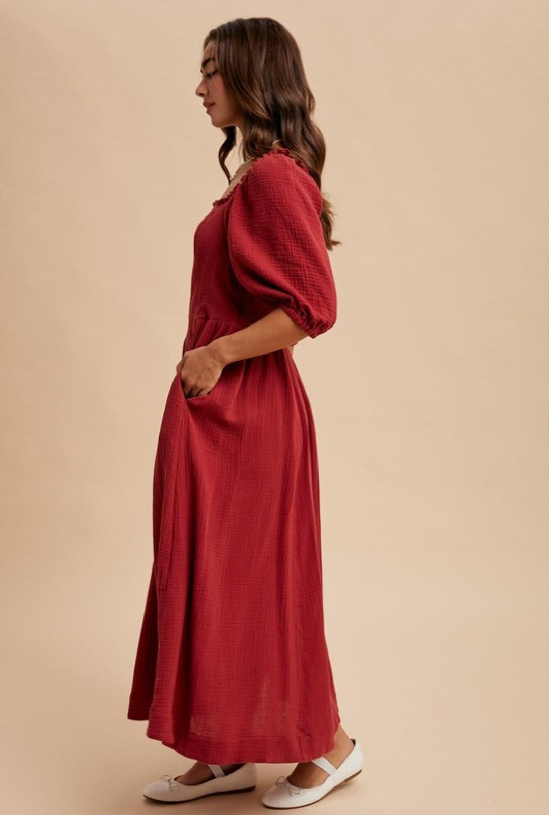 Detalles: Midi Dress, Liningn and Pockets, Modelo is size S.