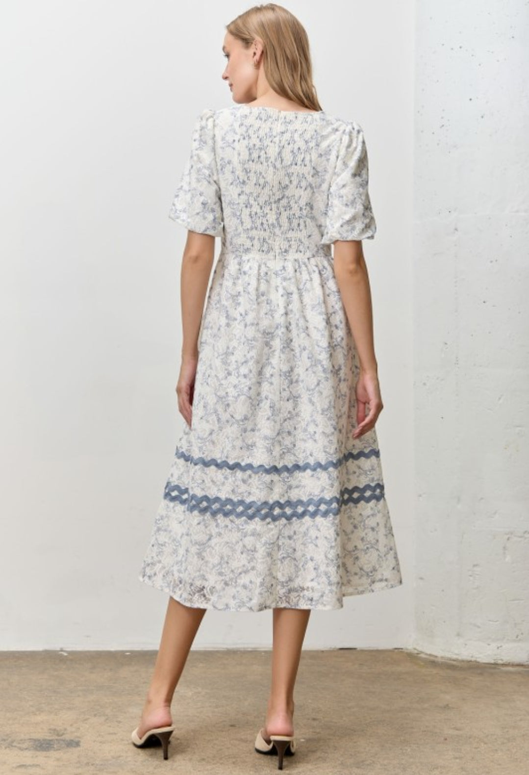 Midi Dress, has Pockets, has lining, model is size Small.