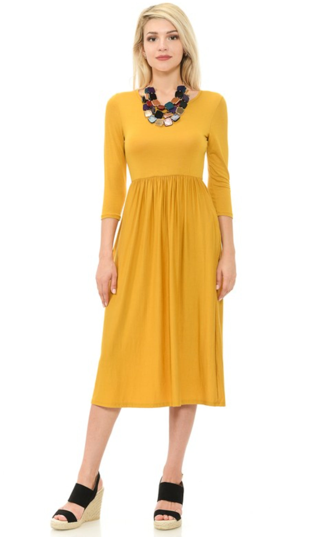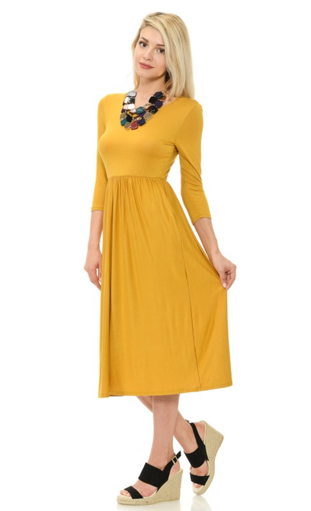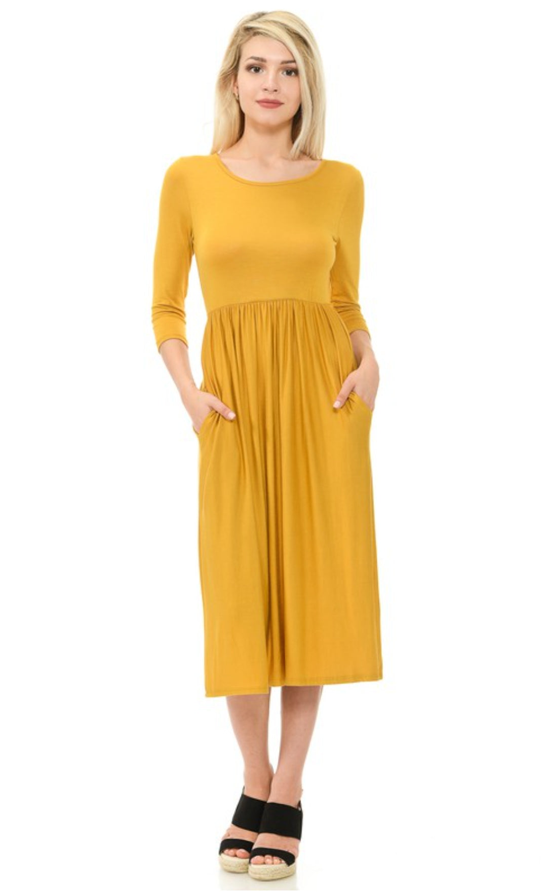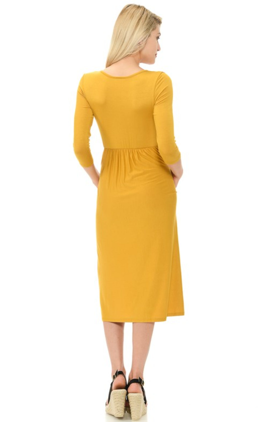 Detalles: Midi Dress, tiene bolsas, estira. Modelo usa S